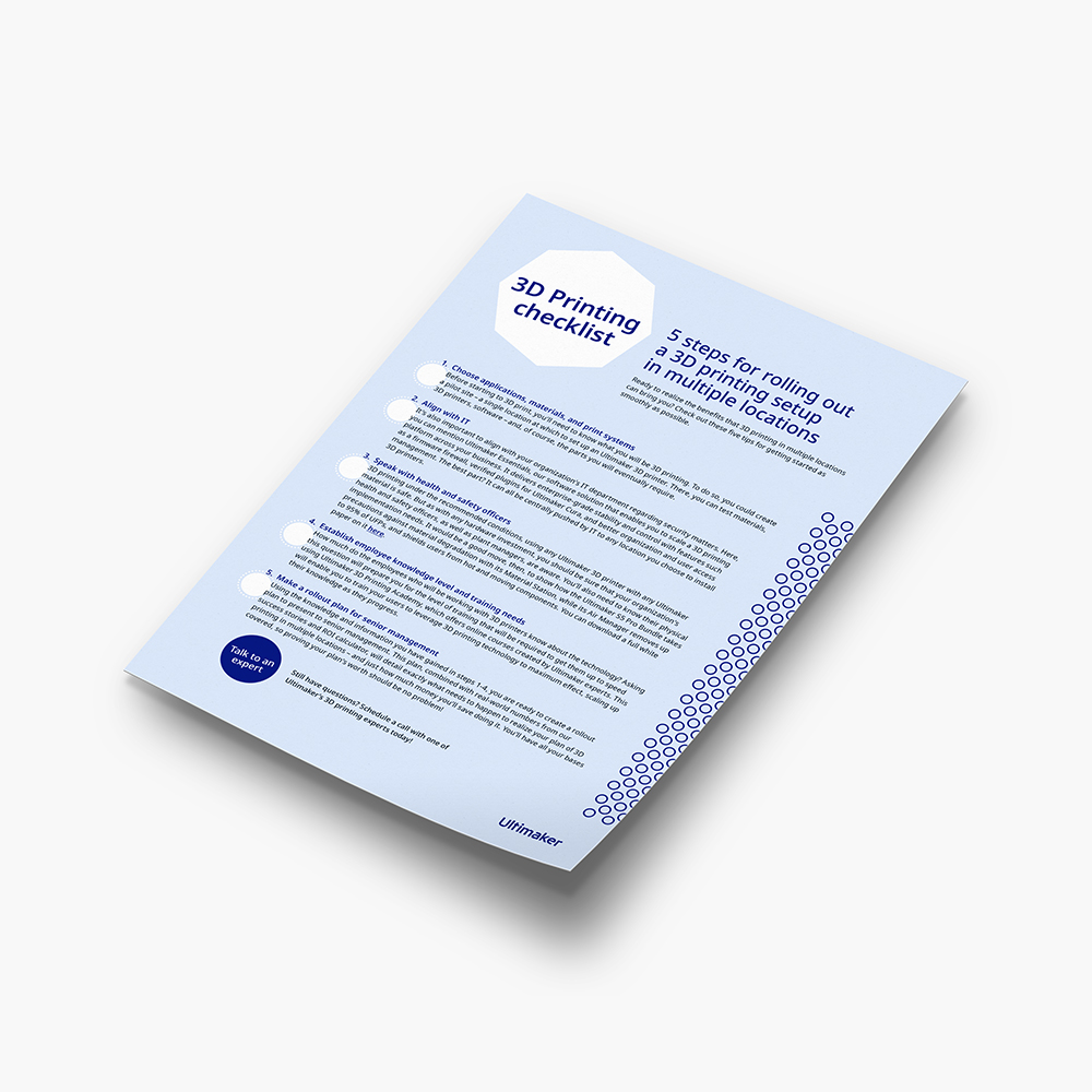 This checklist will guide you through the steps needed to create and present a rollout plan for 3D printing in multiple locations.